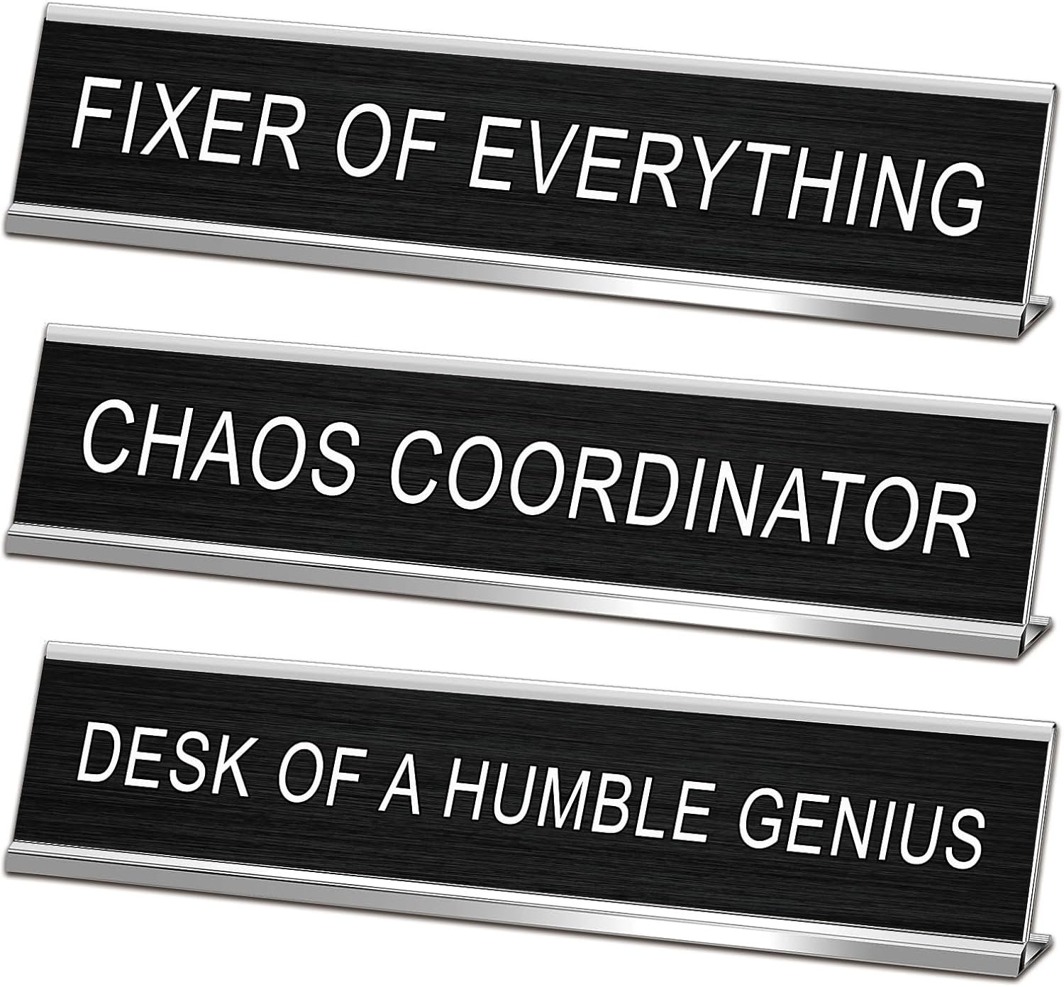 【Ultimate Desk Trophy Collection】Three premium desk plaque designs (Chaos Coordinator, Fixer of Everything, Desk of a Humble Genius) crafted for humor-loving professionals. Ideal mens desk accessories for birthdays, Father’s Day, or retirement gifts.
