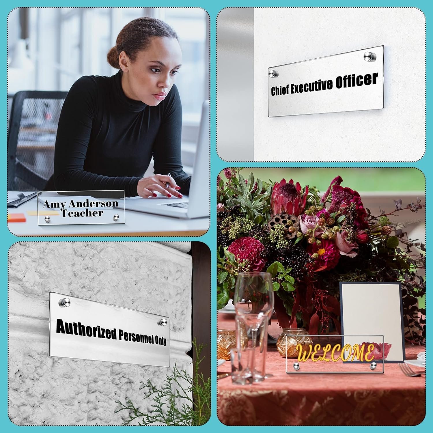 Wide Use: acrylic name plates are suitable for offices, schools, parties, weddings and other occasions; They are great office gifts for colleagues and employees, whether for new employees or to motivate employees; They can also be used as teacher’s office desktop place nameplate, and as guest seat name tag at wedding banquets
