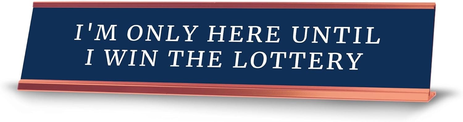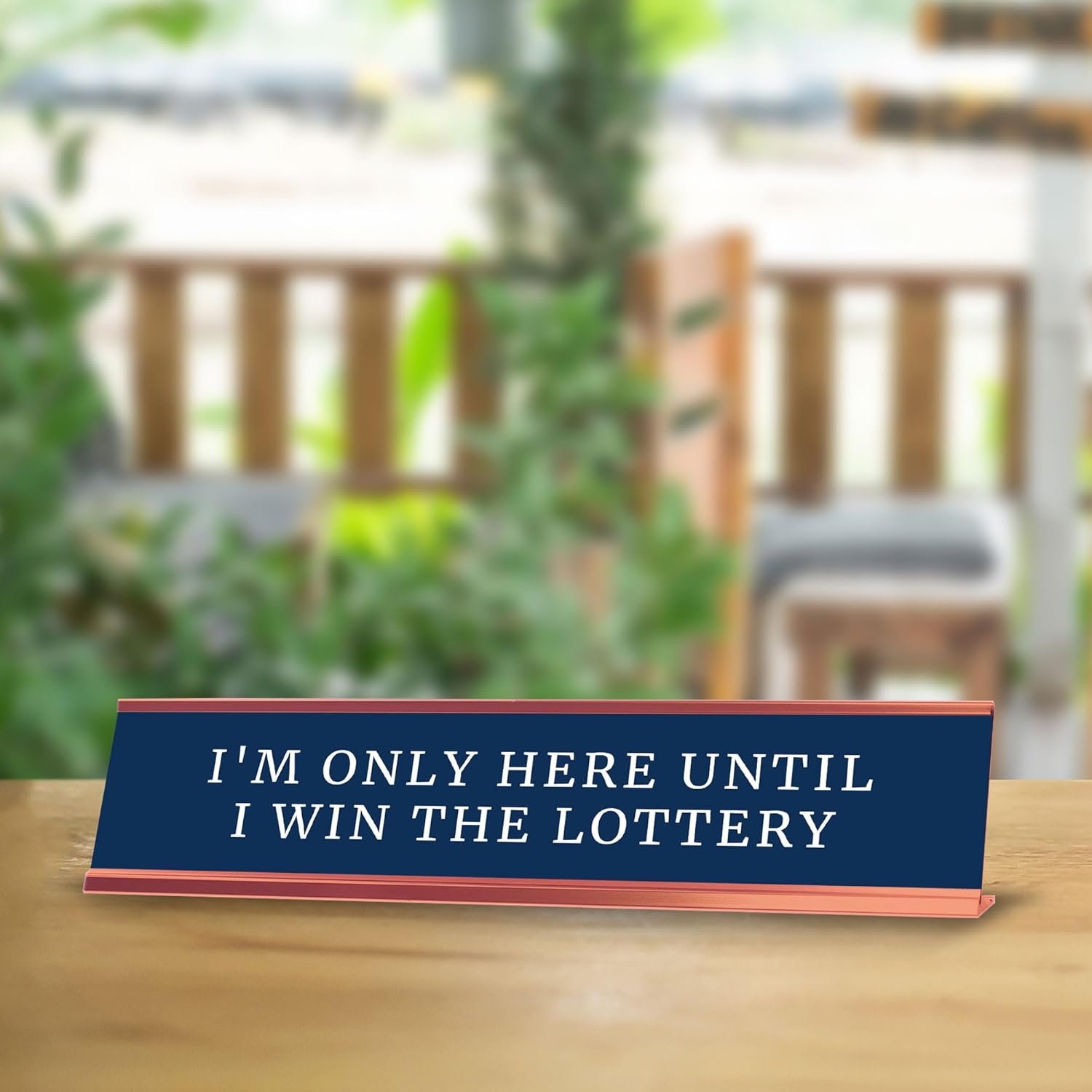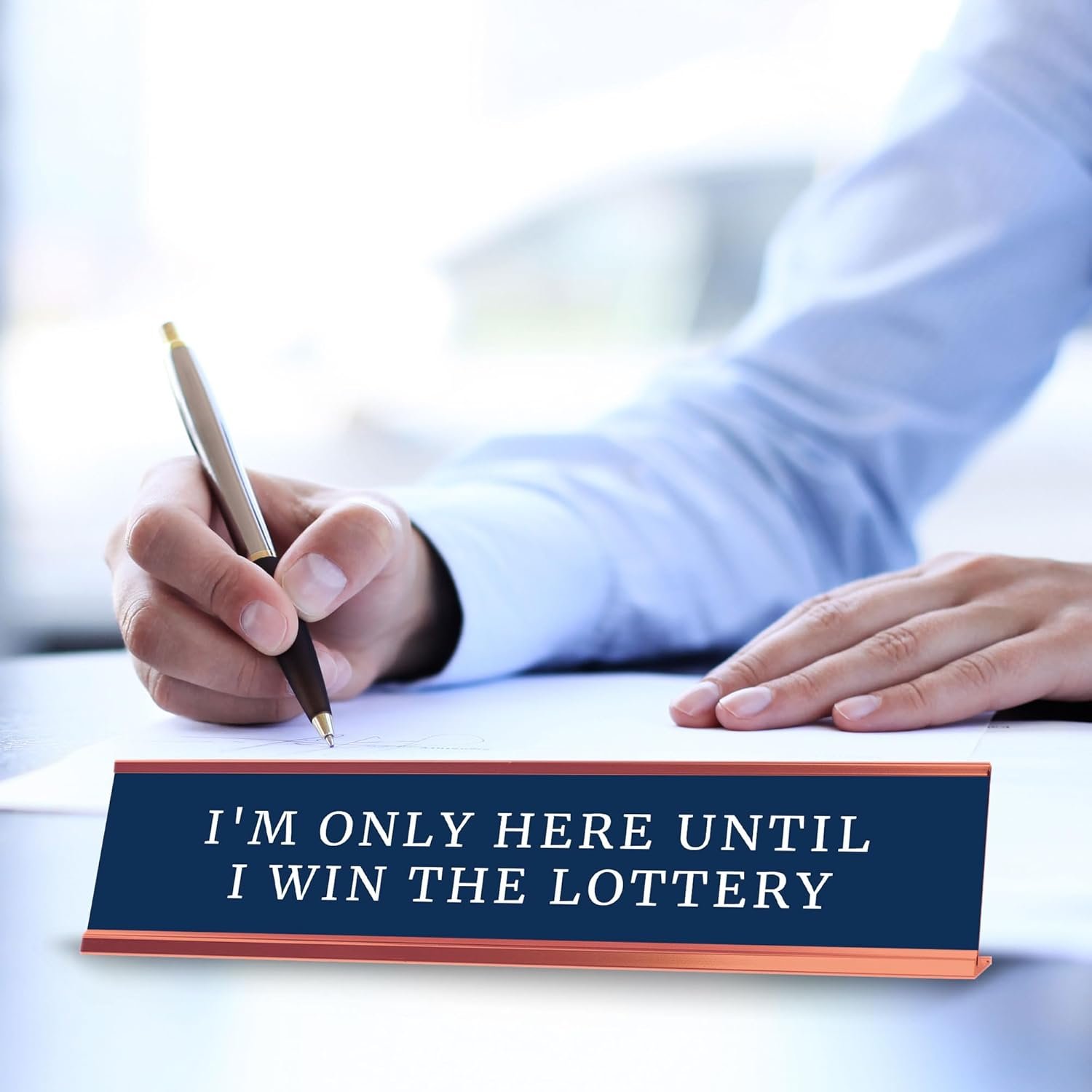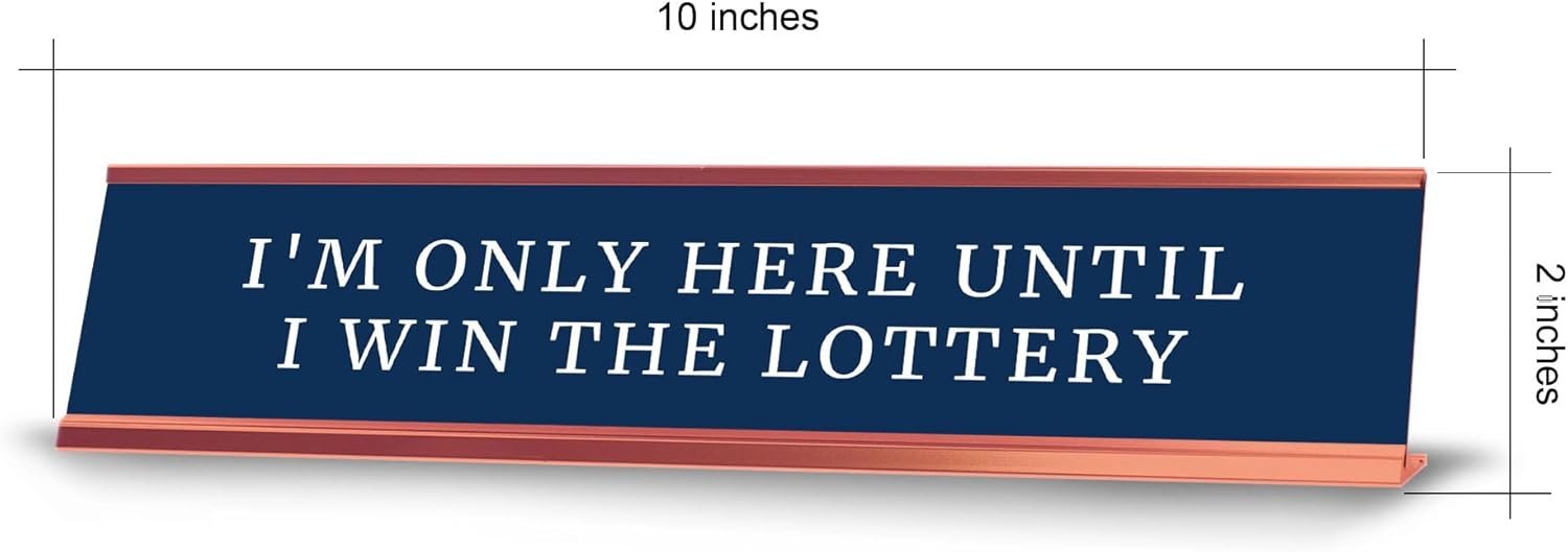 Signs ByLITA Novelty Desk Sign Nameplate “I’m Only Here Until I Win The Lottery”. Fun novelty desk sign gift idea for friends, family colleagues, bosses, managers and more. The premium sublimated plastic nameplate comes with a sturdy colored aluminium frame. Great for home or office appreciation idea for her funny desk sign.
