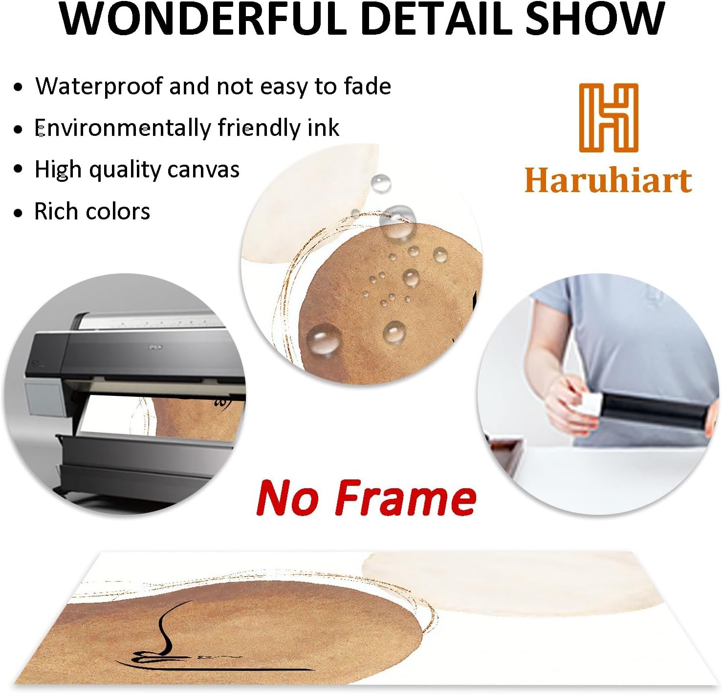 Our Artwork: High definition print on this high grade canvas created by Haruhiart is a 16×24 inch frameless artwork,Our canvas wall art is printed with high quality canvas and environmentally friendly ink, which is not easy to fade and the printing effect is clear and natural