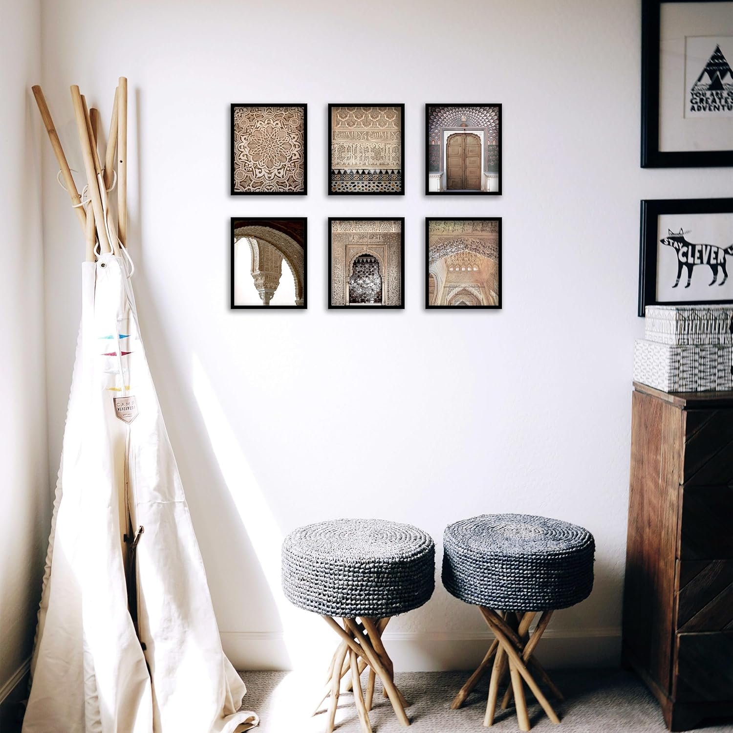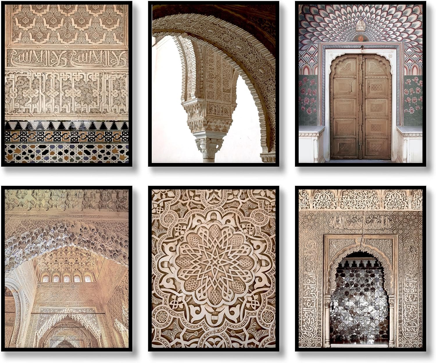 Islamic Wall Art Prints Set of 6 Vintage Moroccan Door Architecture Posters Mosque Arabic Archway Cultural Canvas Wall Decor
