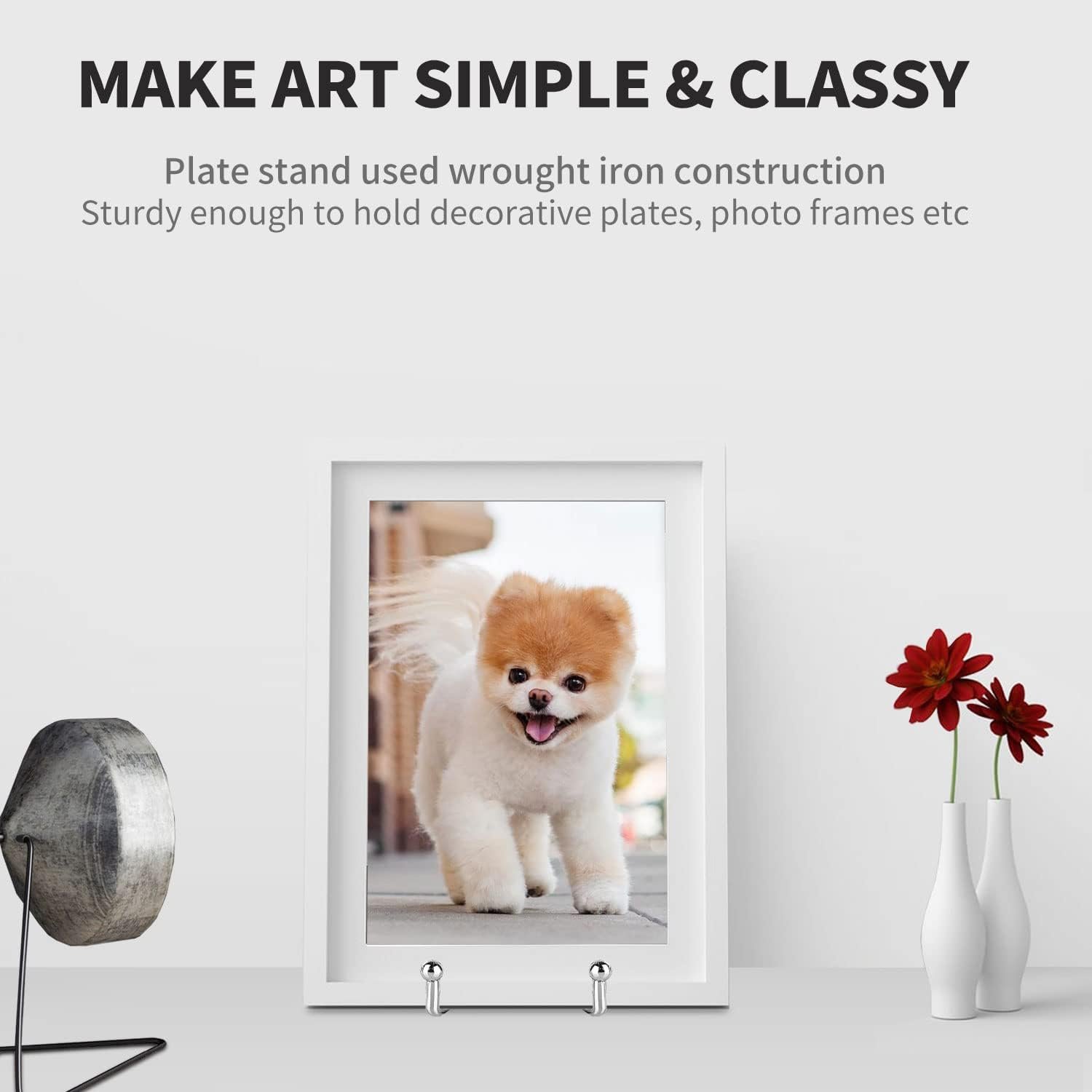 DESIGN CONCISE & STURDY – This decorative plate stands has silver electroplating coated finish and high-quality wrought iron craft, sturdy enough. Perfect for hold decorative plates, photo frames, canvas, commemorative plaques, postcards, pictures, book, vinyl records, tablets and tabletop art etc. Tailored for display your showpiece! In a simple and elegant way let you focus on your artwork rather than display holder.