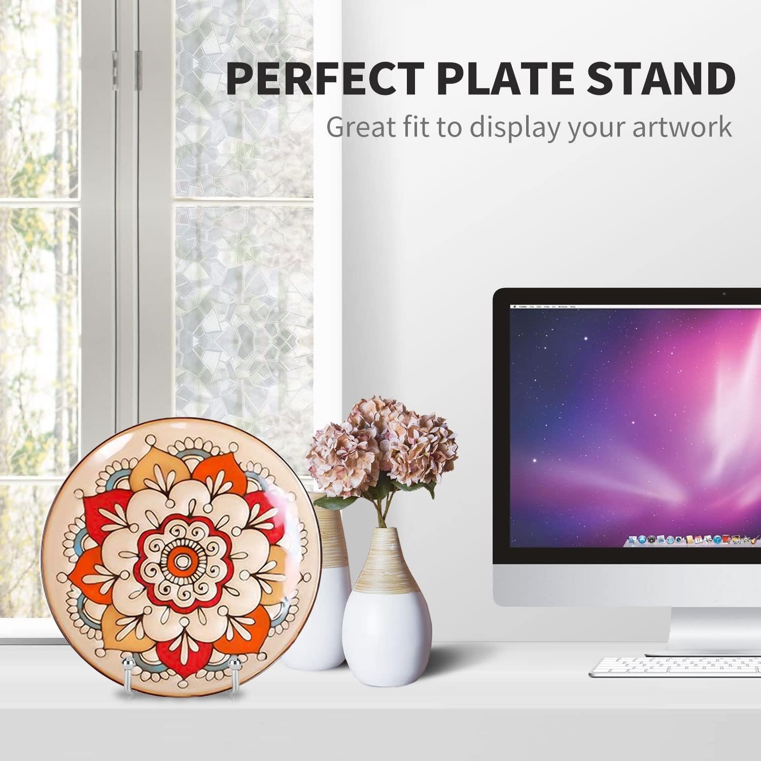 LOOK GOOD & STABILITY – This decorative plate stand accentuates the style of showpiece, the silver coating protects the showpiece well from scratches. In addition, the stable structure of the display stand will not let the ornaments falling down at all. Concise elegant appearance is very useful in the home, office, banquet and showroom.
