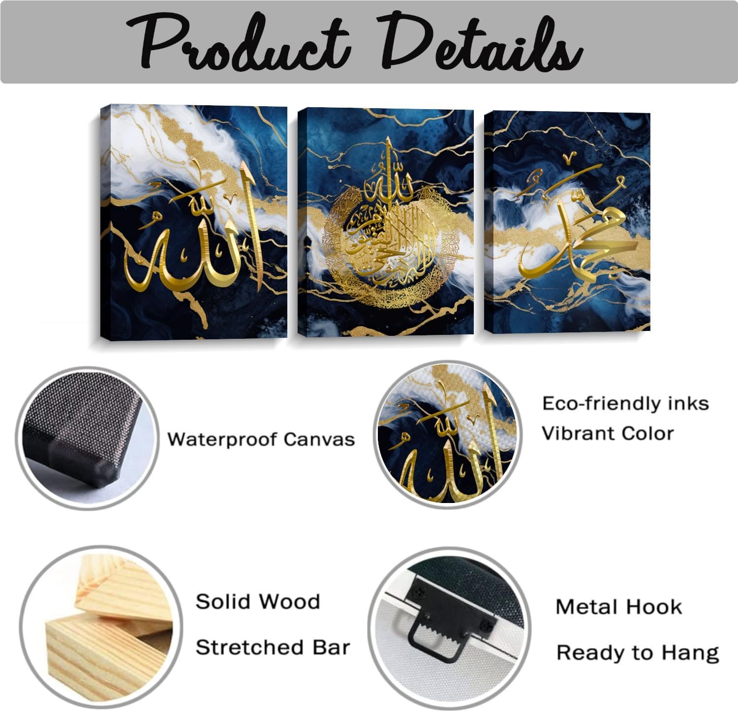 Islamic Canvas Wall Art Set of 3:With its Islamic motifs and meaningful symbolism, this canvas wall art perfectly captures the essence of Muslim culture and spirituality.It serves as a reminder of faith, devotion, and the importance of connecting with one’s religion.Each canvas art painting is installed with a metal hook, which can be easily hung on the wall.
