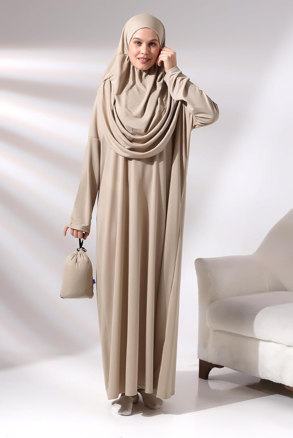 Customers like the fit and color of the abaya. They mention it’s easy to wear, beautiful in its simplicity, and humble in presentation and symbolism. However, some customers have reported that the material is very thin and not acceptable for a prayer mat. Opinions are mixed on the material quality.