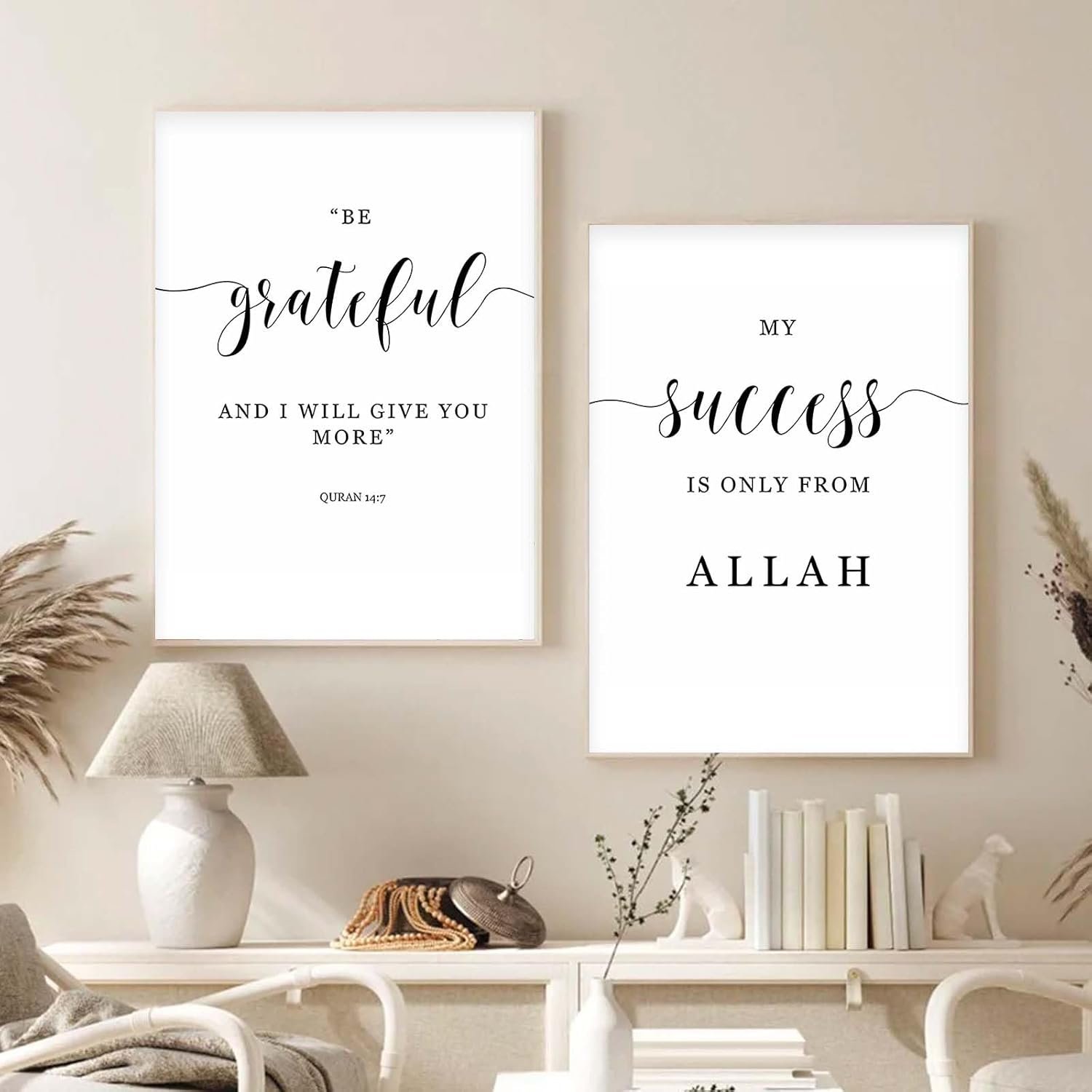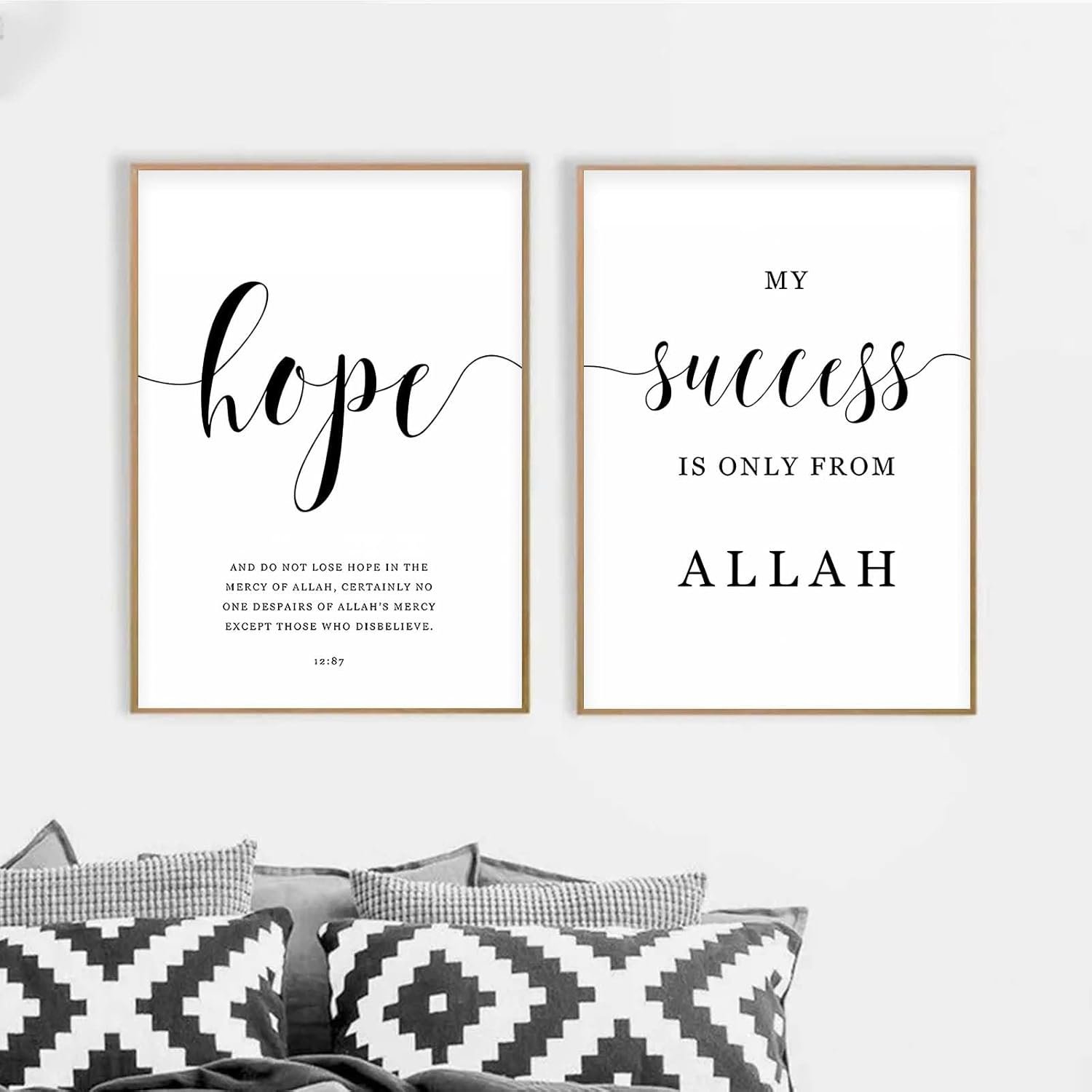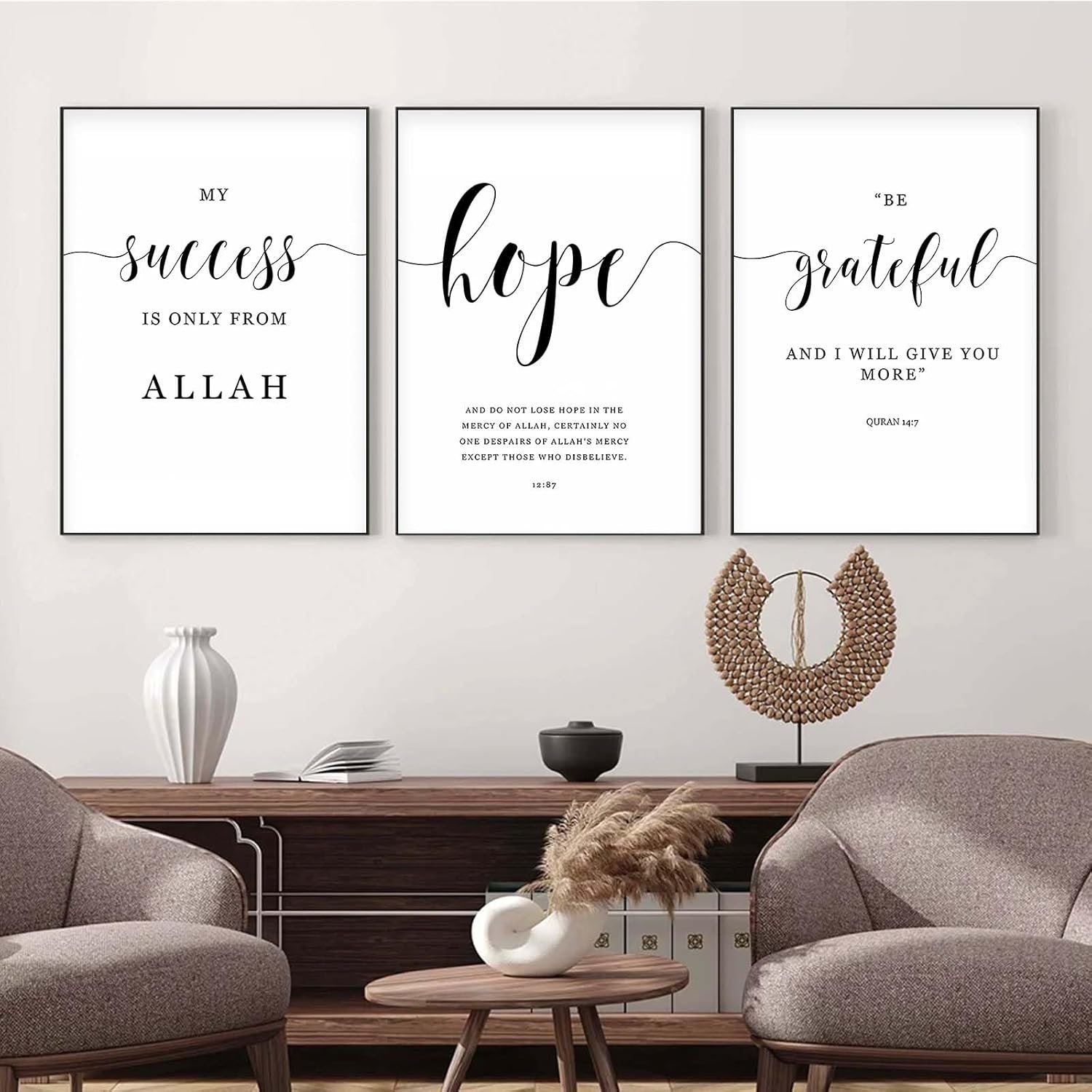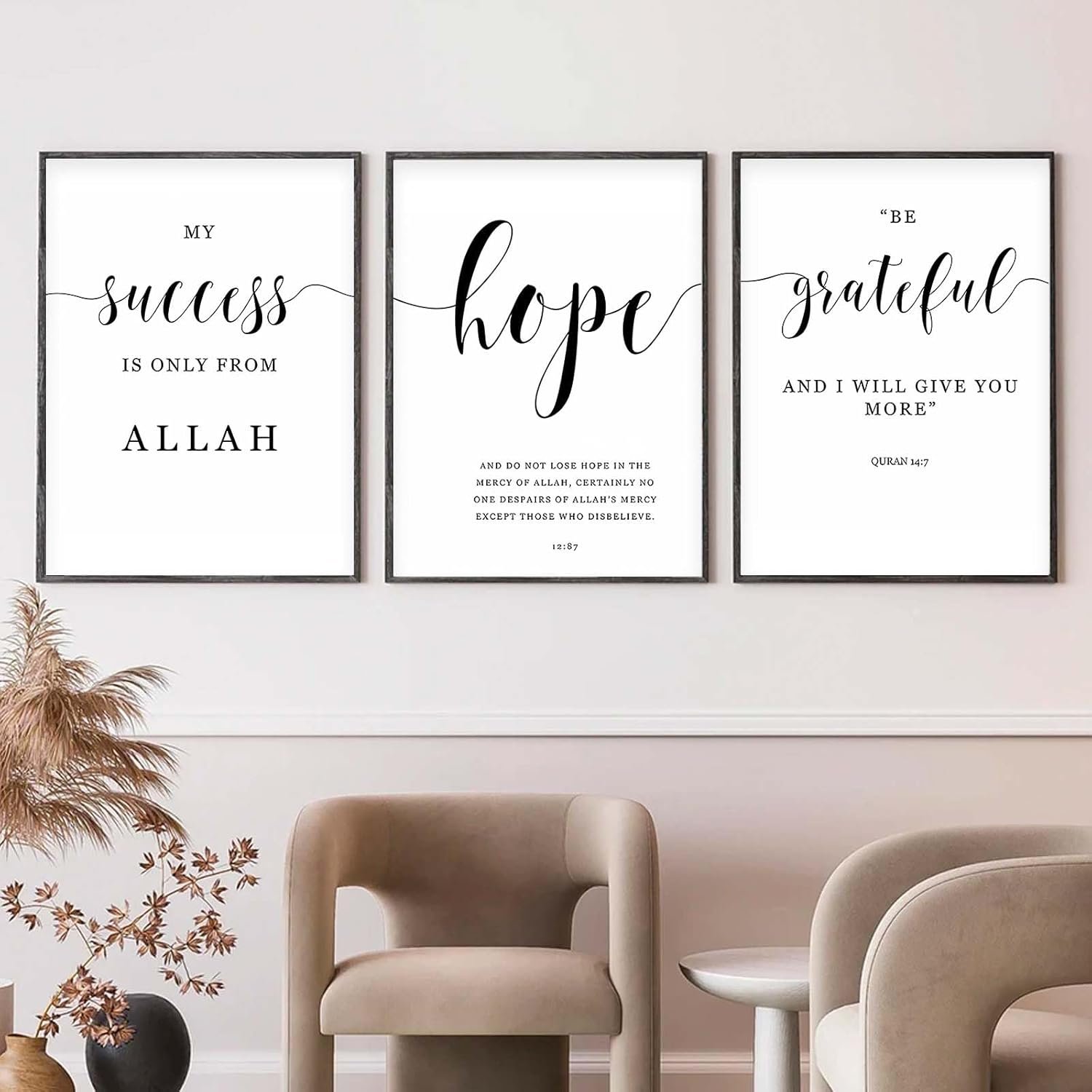 Recrtain Islamic Canvas Painting Muslim Hope Success Grateful Prayer Canvas Wall Art,3Pcs Modern Islamic Posters Wall Art Pictures for Living Room Home Decor UnFramed