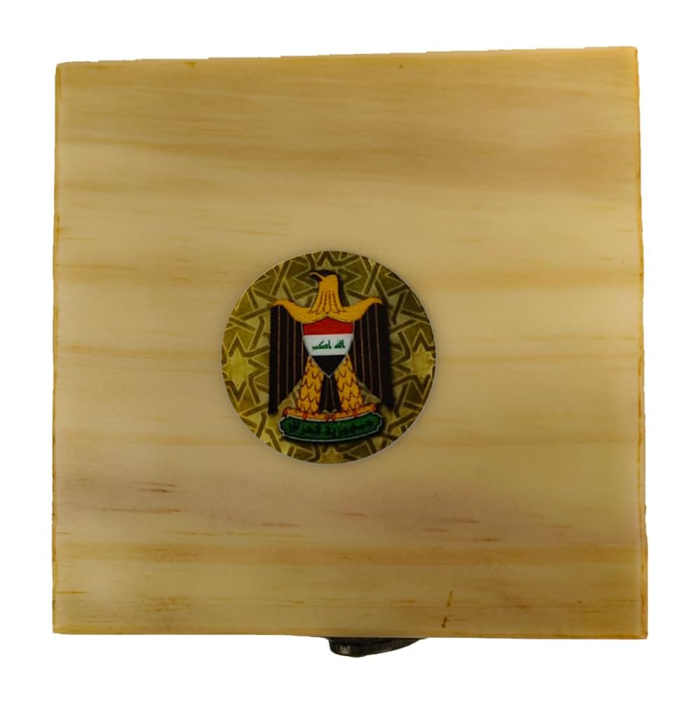 Classic handmade pinewood presentation / keepsake pillowed box with the Ba’ath party Iraqi national eagle emblem