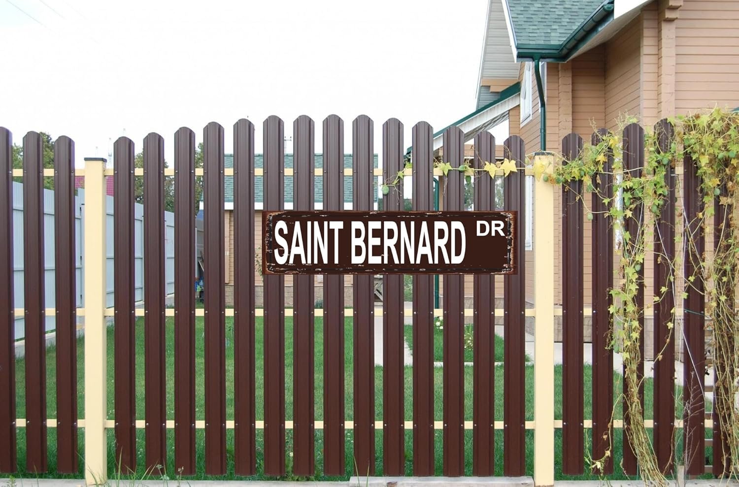 **Unique Design**: The Saint Bemard DR Sign is a perfect addition for any dog lover, featuring a funny street sign design that adds charm to your home, patio, garden, or garage.
