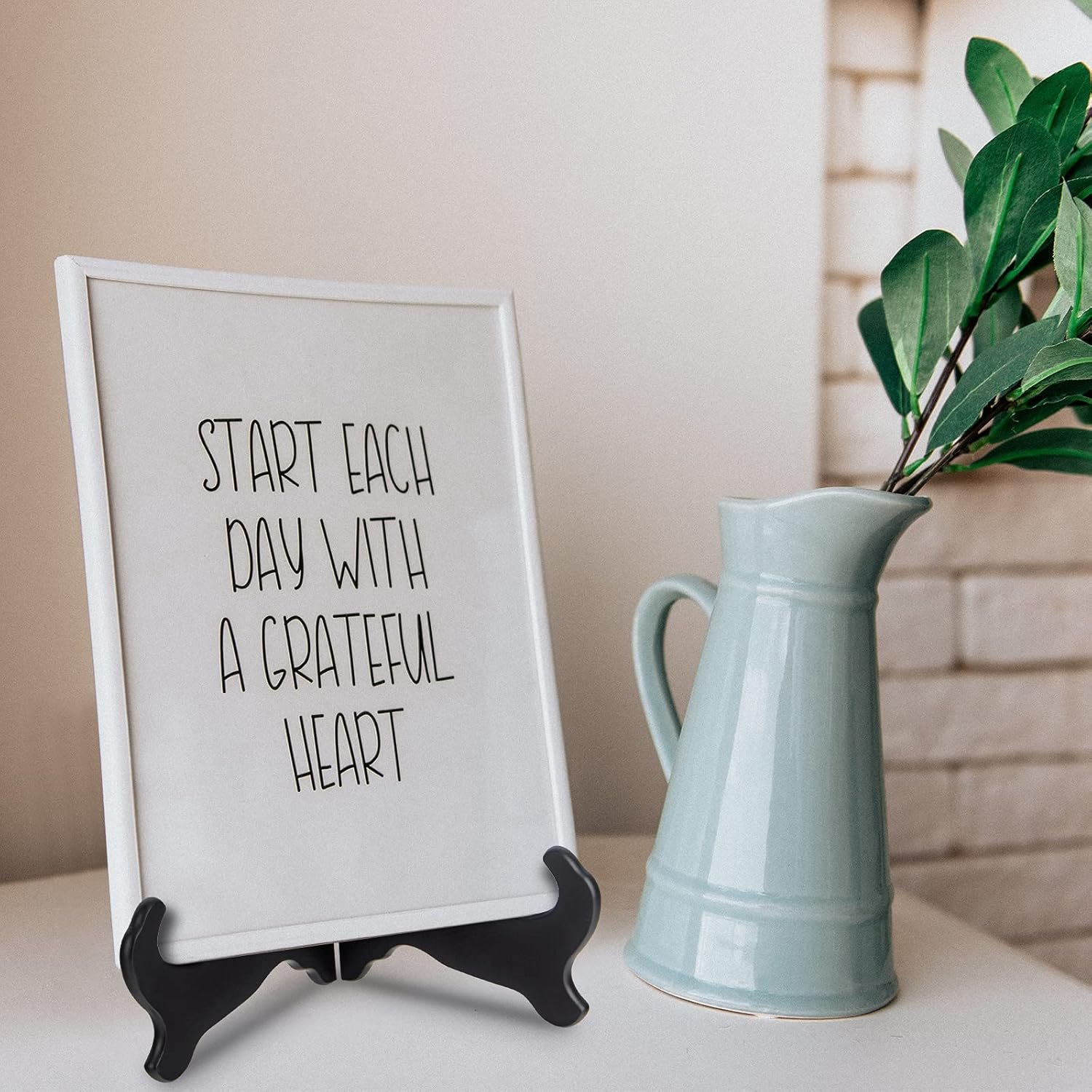 Material: Plate holder made of durable black wood, adjustable hinges allow you to place item at an angle.