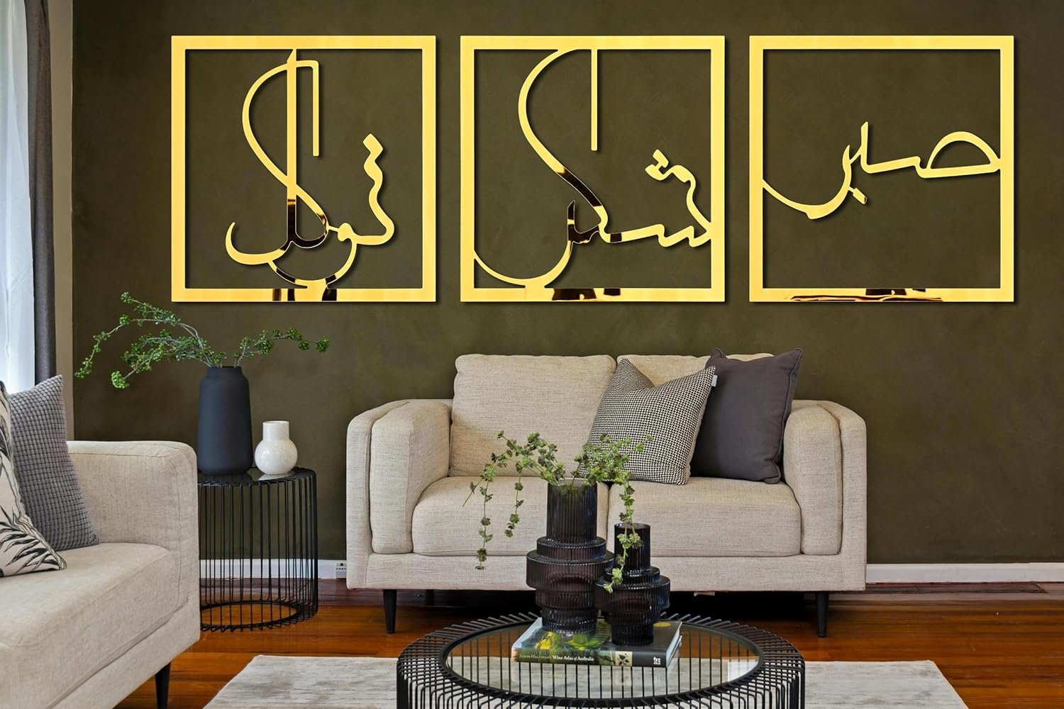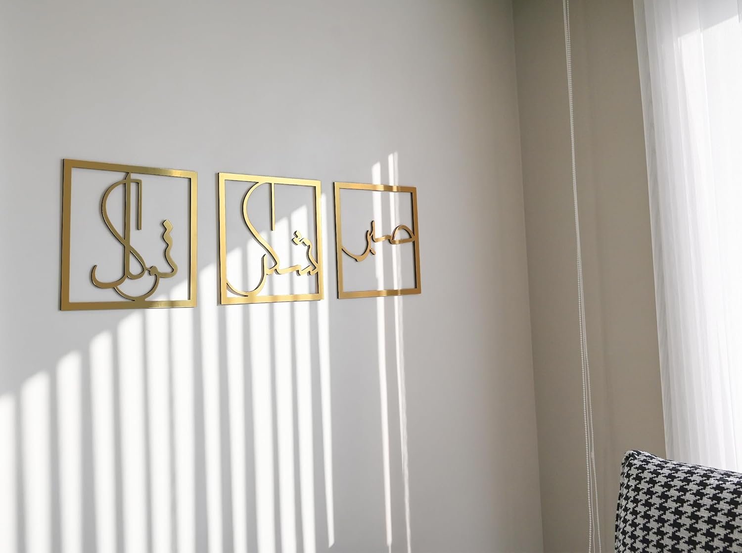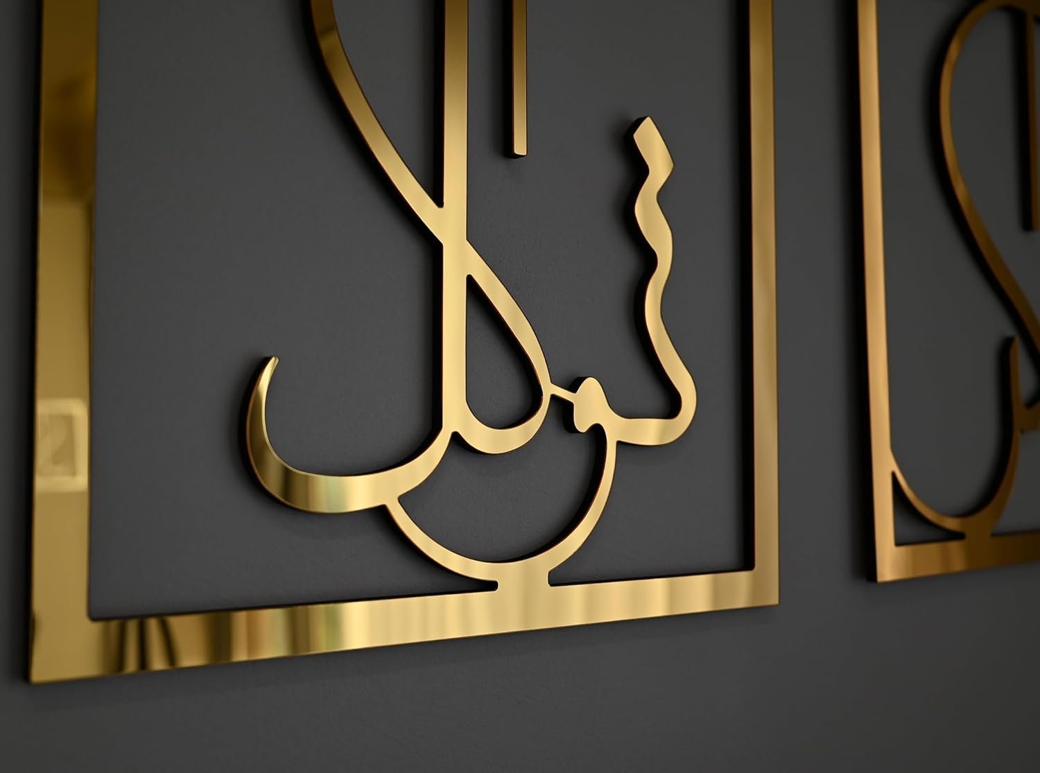 MUSLIM WALL DECOR, this exquisite gold piece of Islamic calligraphy wall art serves as a spiritual reminder and a tasteful addition to the ambiance of your home. Perfect for Islamic living rooms decorations, it effortlessly combines elegance with devotion