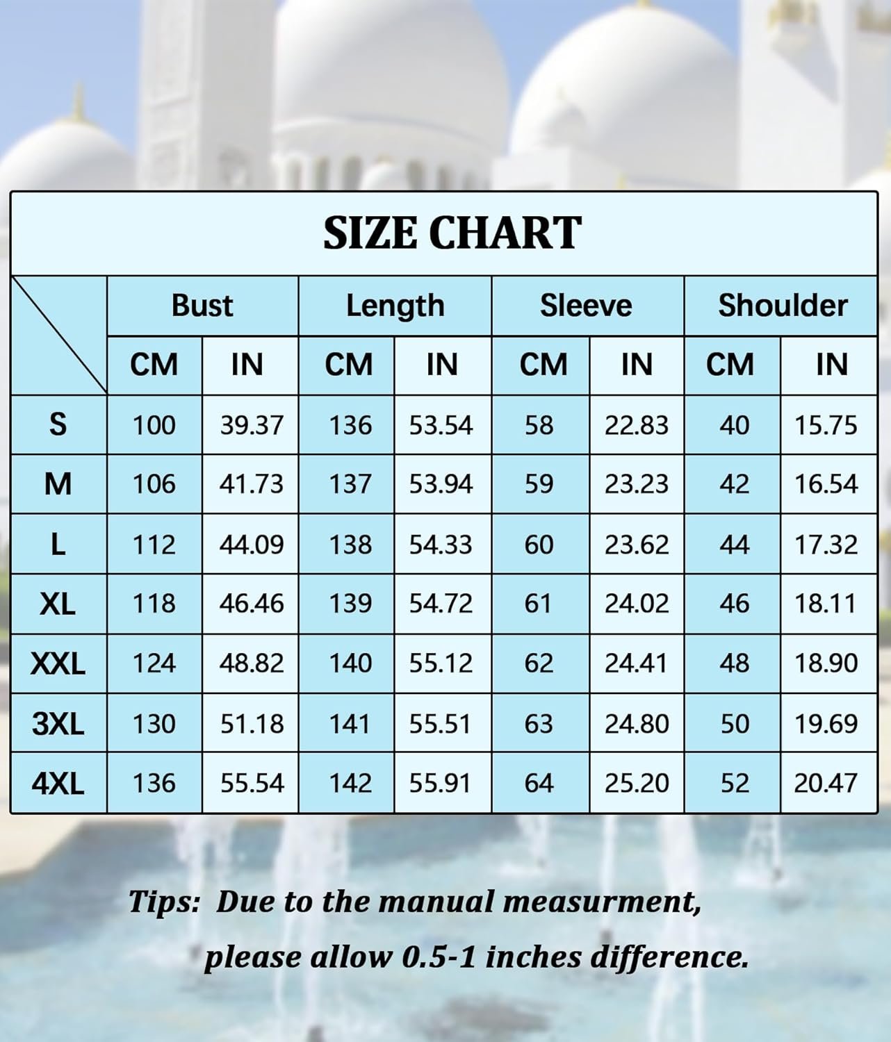 WSPLYSPJY Prayer Dress for Women Muslim Abaya with Hijab Size Chart