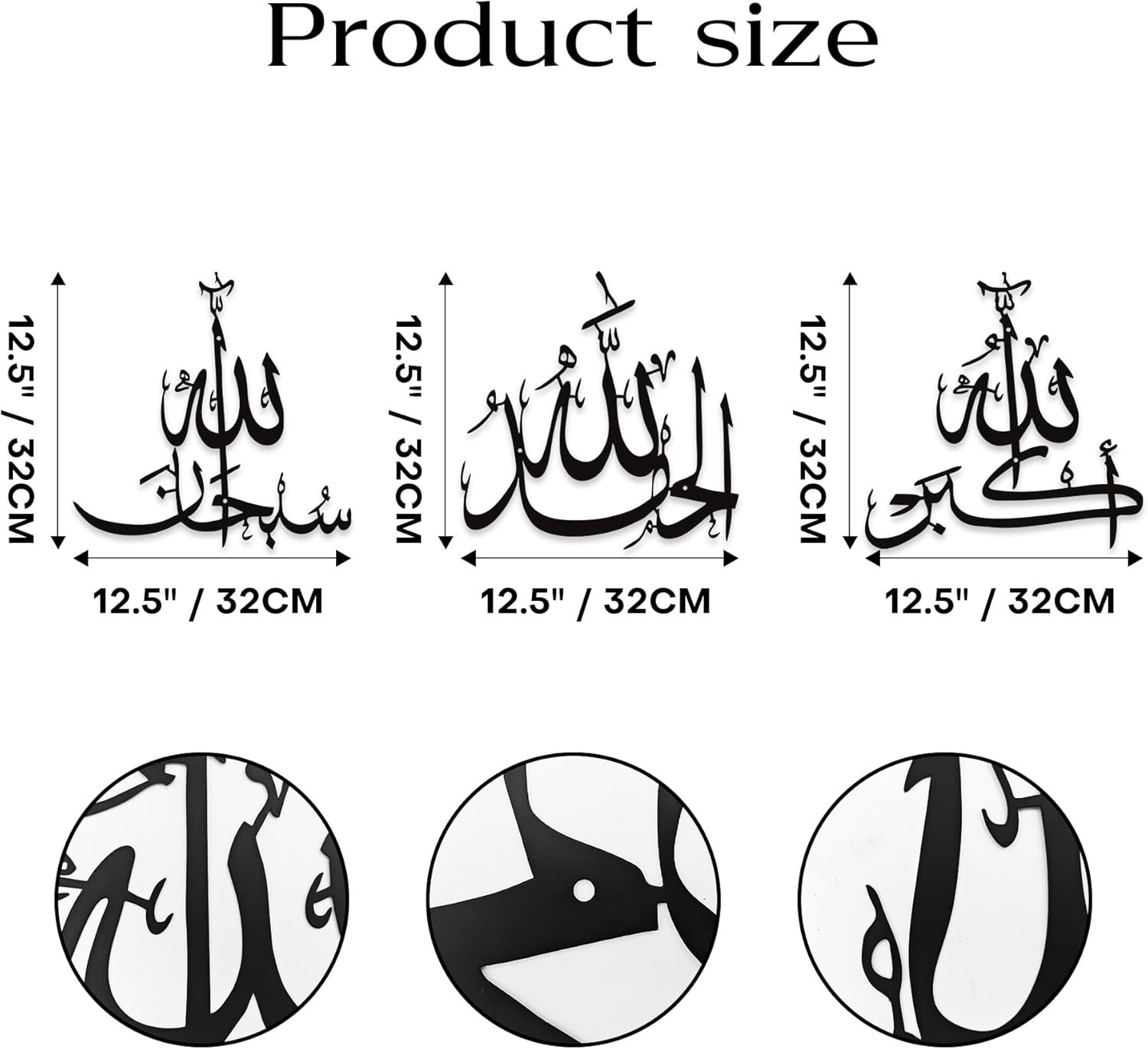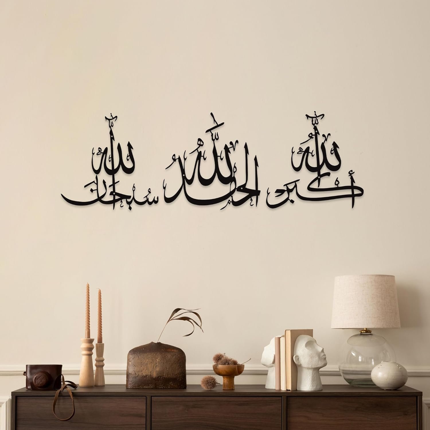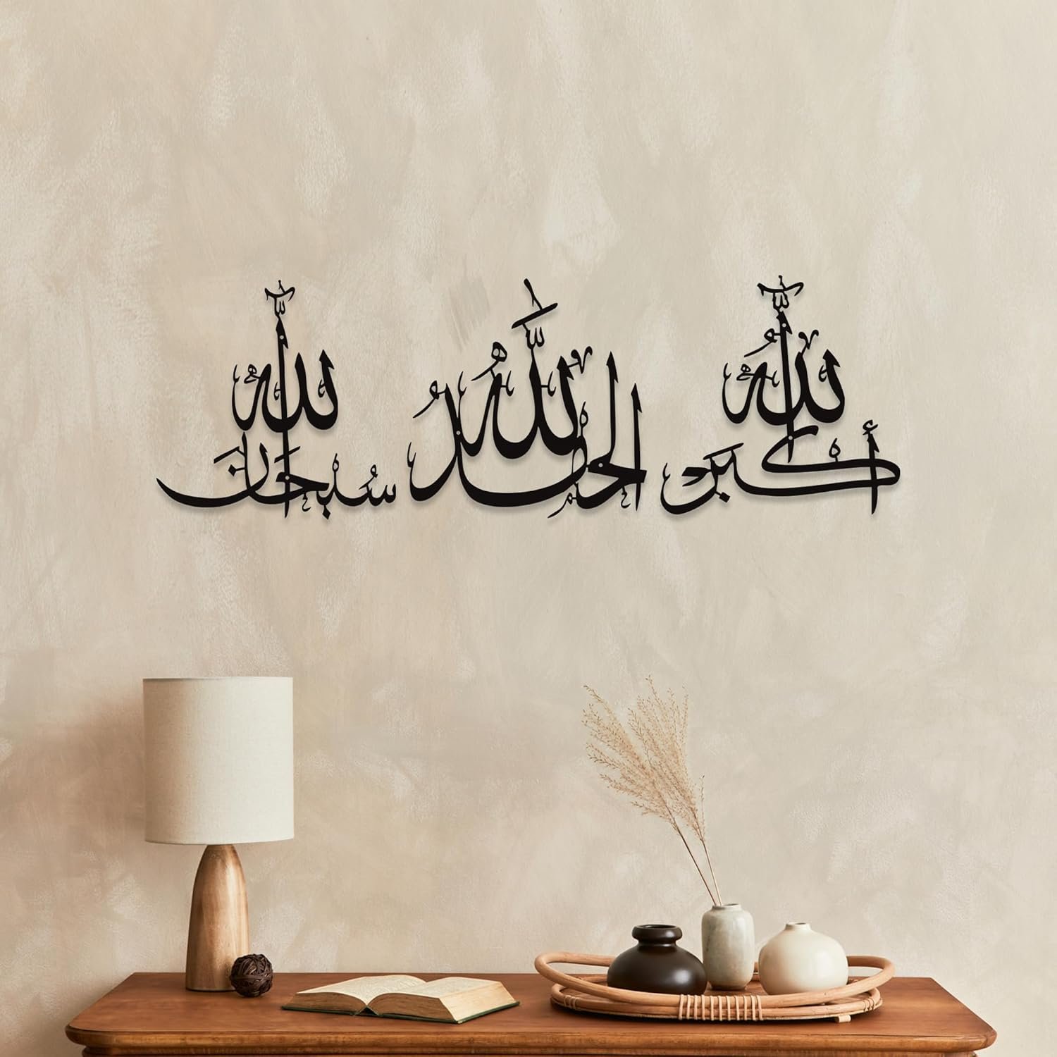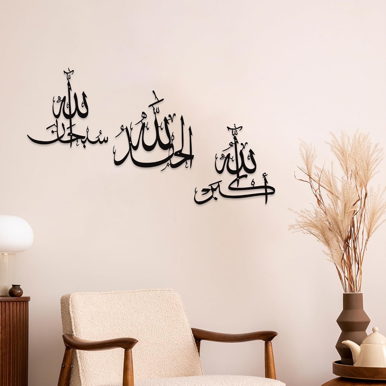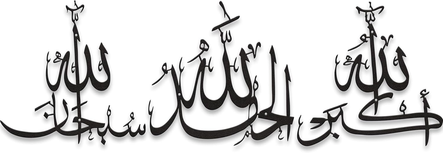 Sacred Islamic Calligraphy Trio: This set features three timeless Islamic phrases – Subhanallah, Alhamdulillah, Allahu Akbar – elegantly crafted in traditional Arabic calligraphy. A spiritually uplifting addition to Muslim homes or mosques as Ayatul Kursi wall decor or daily reminders of faith.
